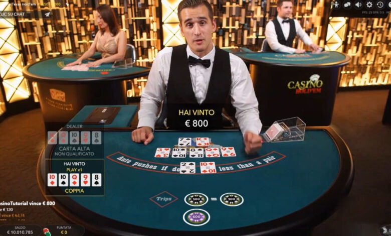 Invece è possibile giocare a poker online dal vivo contro il banco, infatti quasi tutti i siti ADM, alla loro sezione “casinò live”, offrono questa possibilità. In pratica, tutti i giocatori connessi hanno la stessa mano che giocano contro il mazziere. Qui sotto potete vederne un’anteprima del casinò di Sisal.